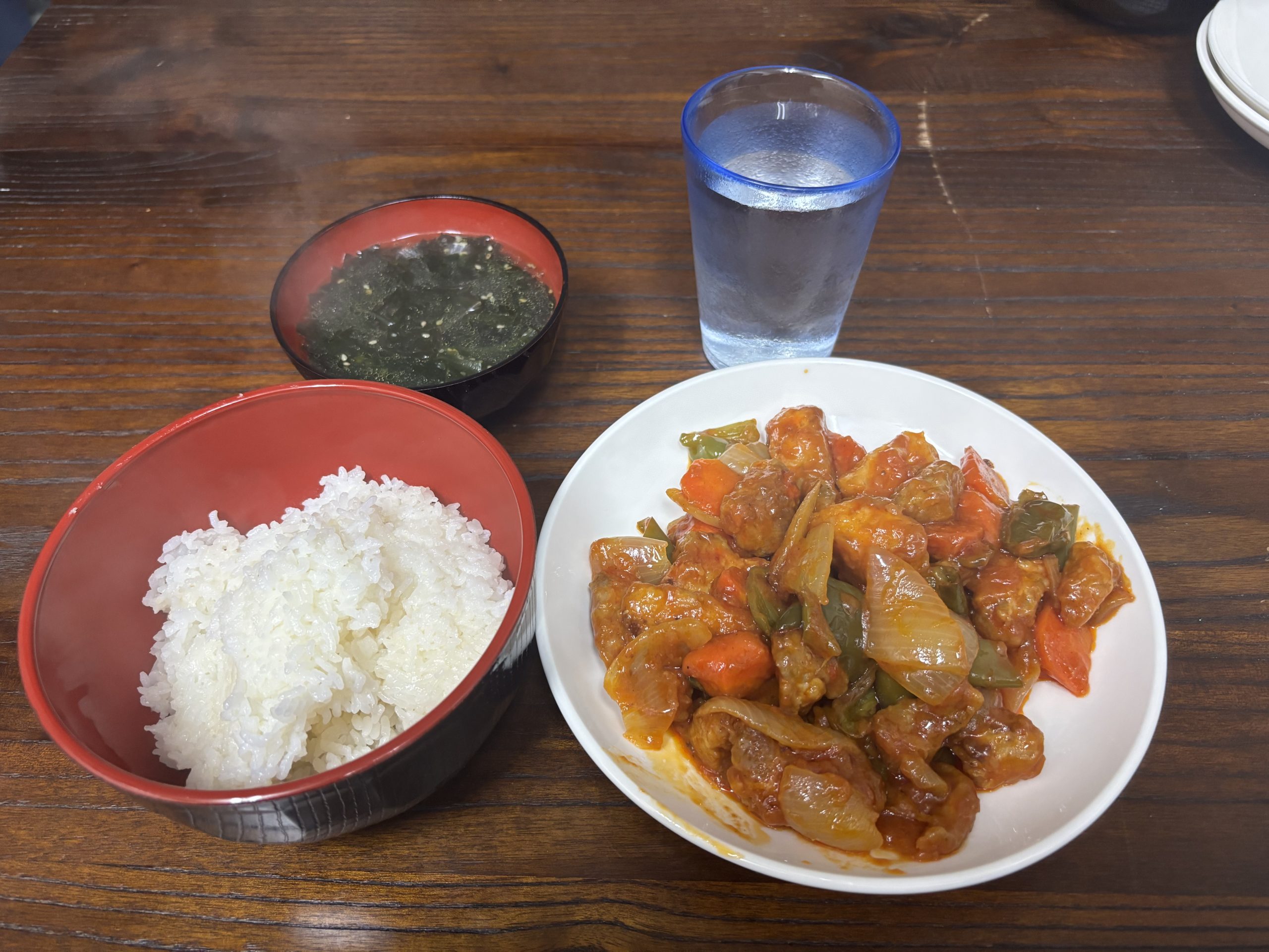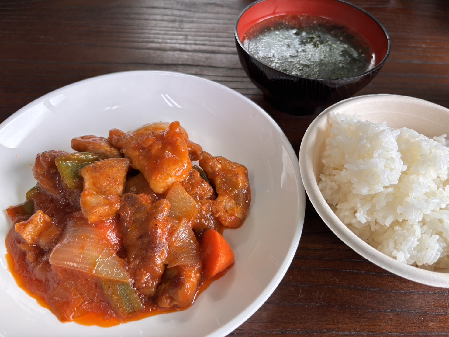今日は自分が個人的に食べたいだけで酢豚にしました。そして初のわかめスープ。