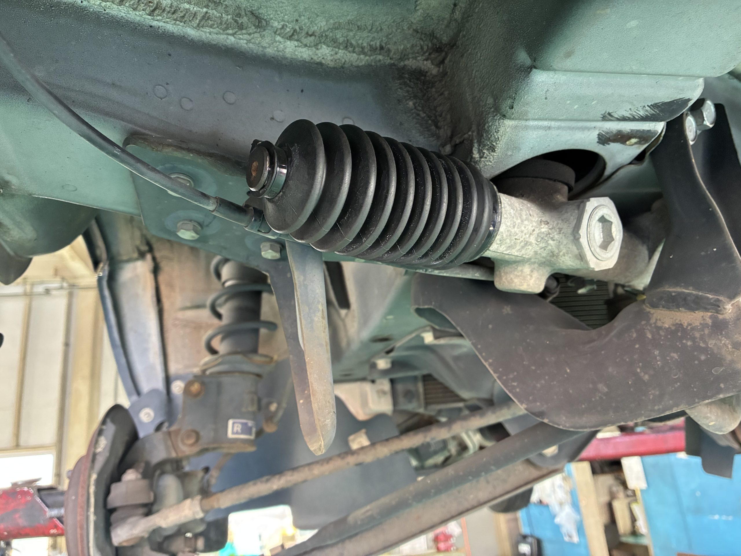 交換が終わり、次の車両の車検を始めると、またラックブーツが破れているではありませんか!