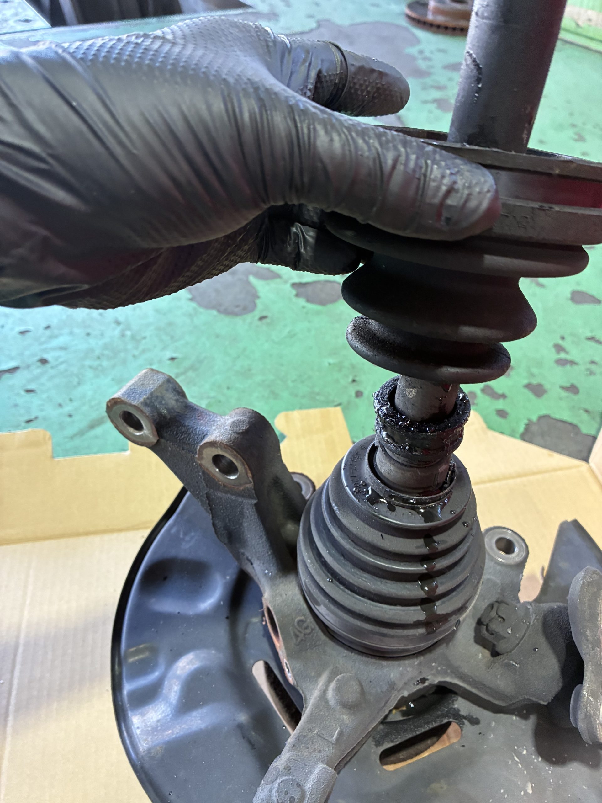 こちらも車検に通らないので交換致しました。そして、次の車検ではドライブシャフトブーツの破れが。こちらも車検に通らないので交換致しました。